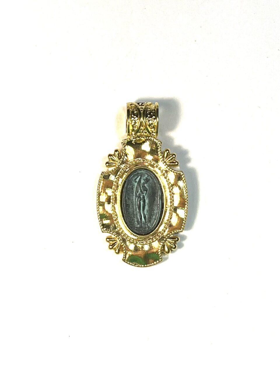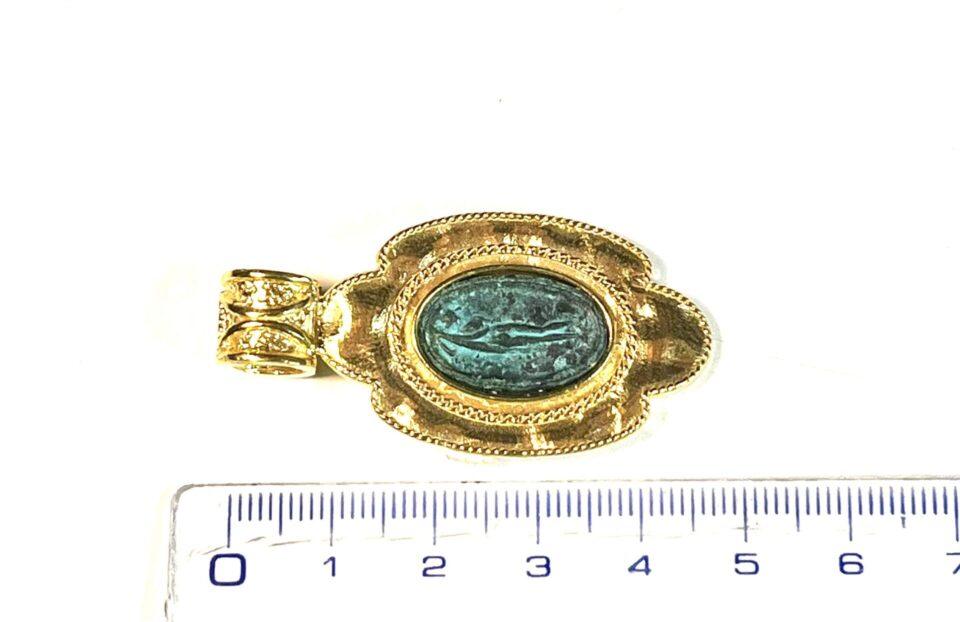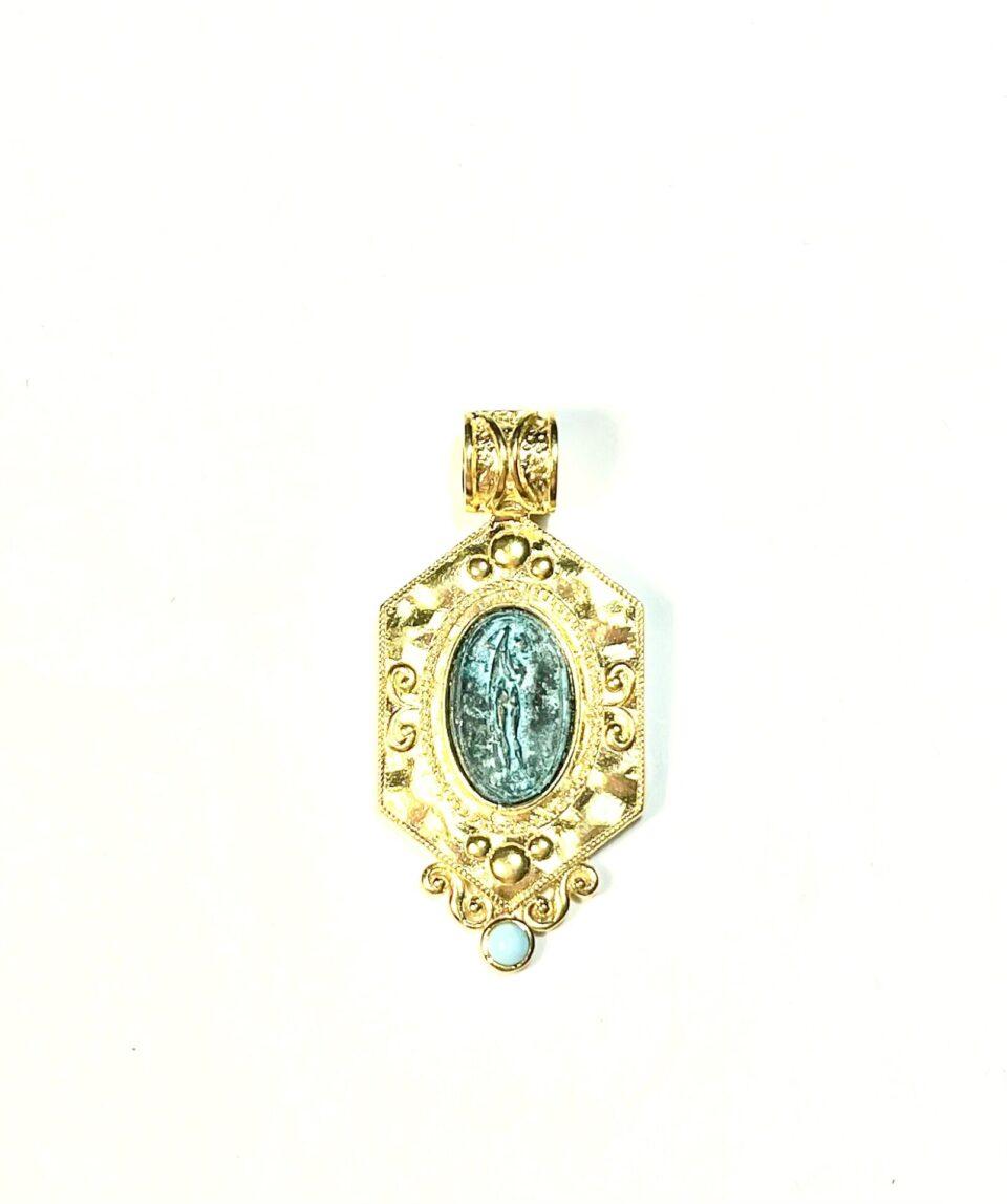 Pendant in 925 sterling silver plated with 18k gold, with antique coin.