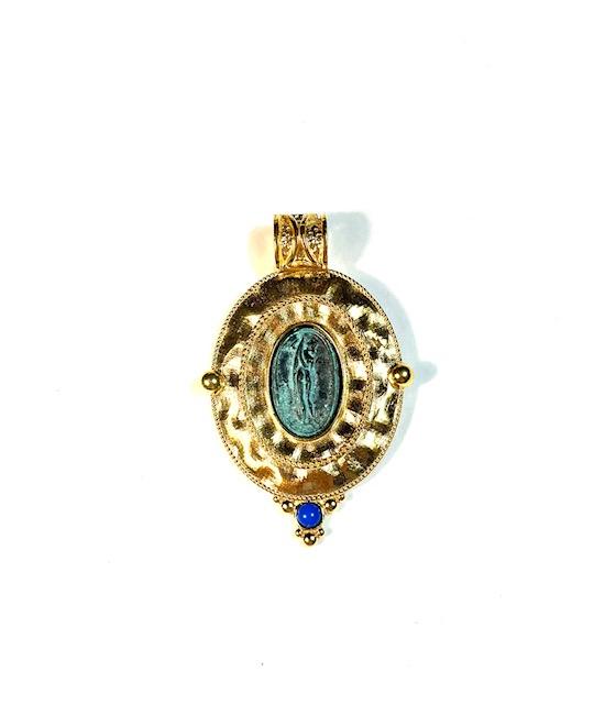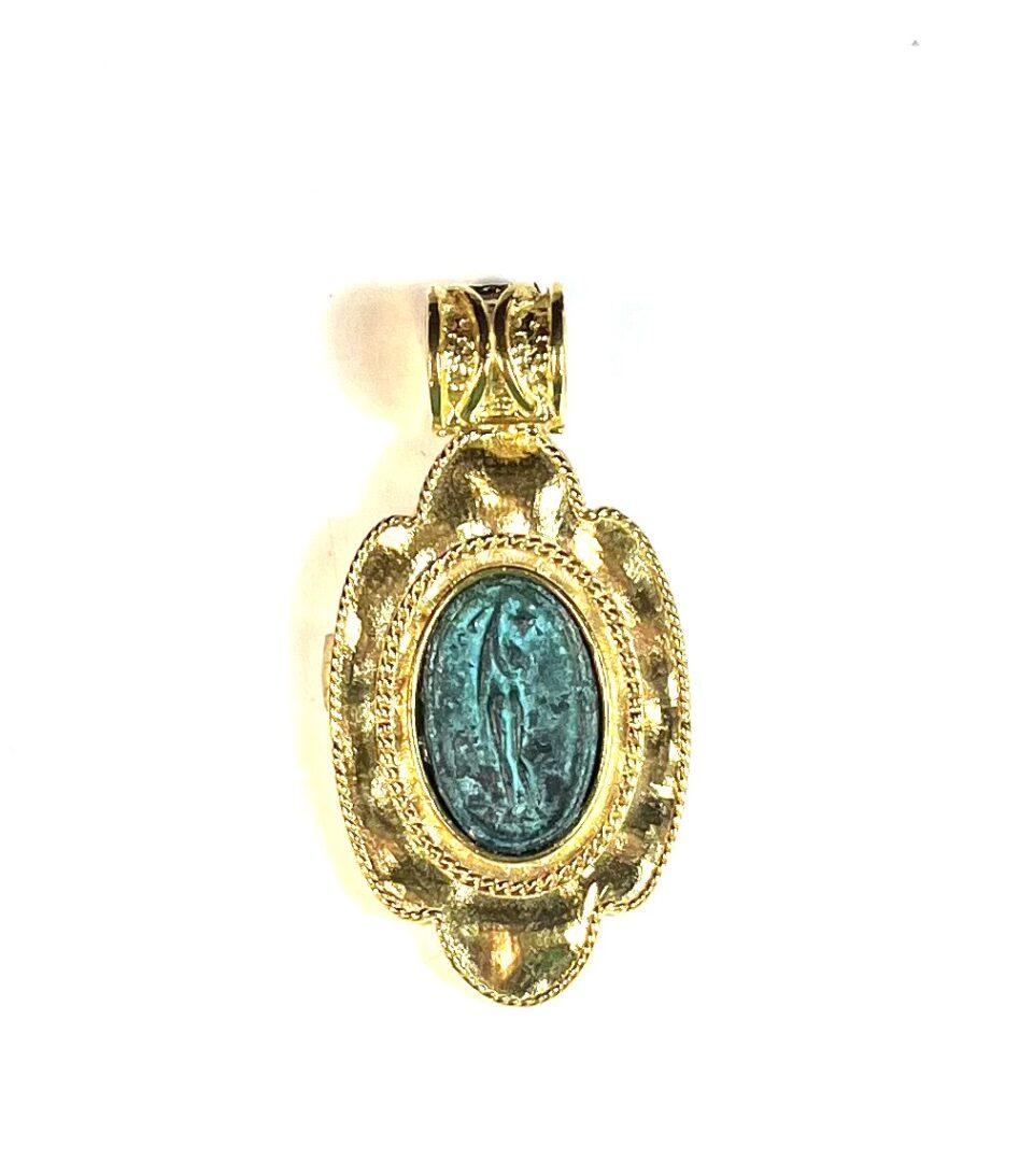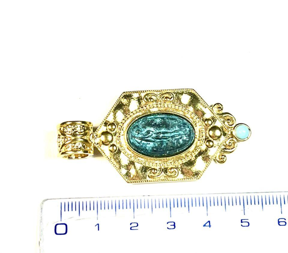Pendant in 925 sterling silver plated 18k gold with antiqued bronze coin.