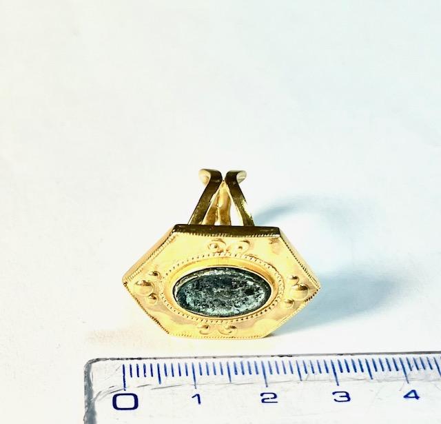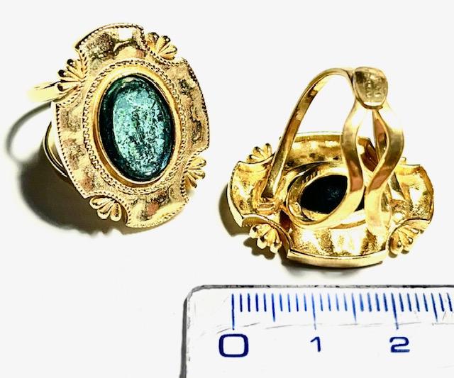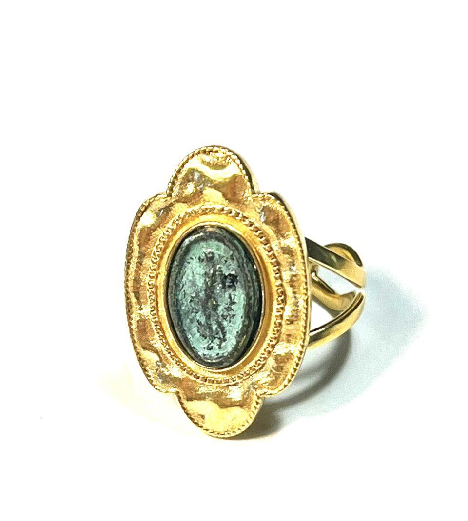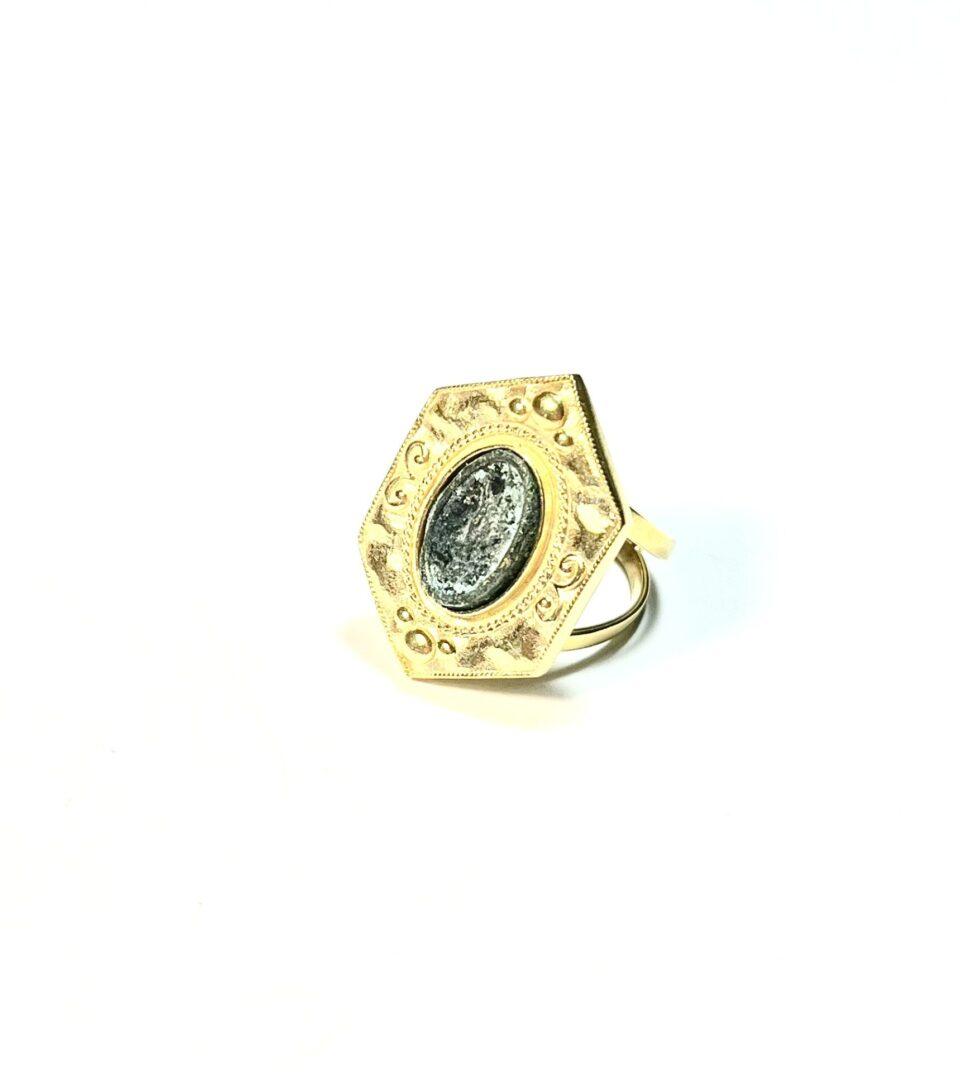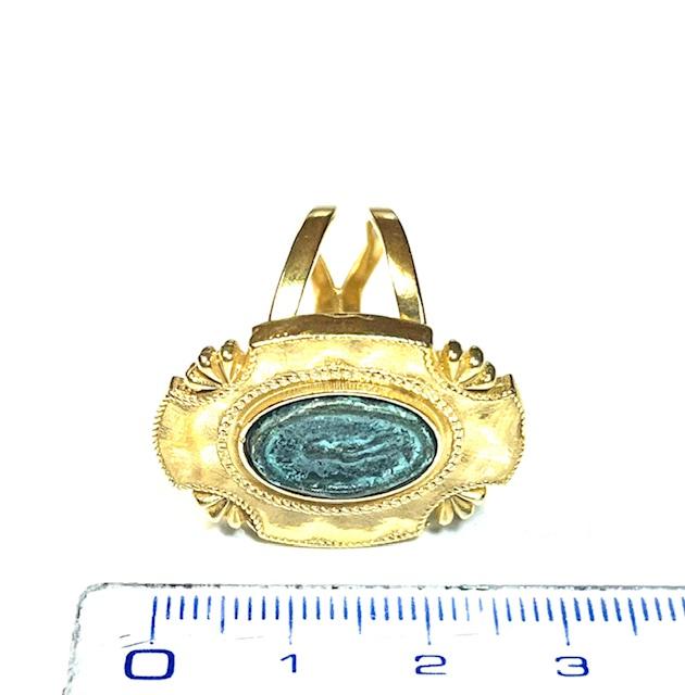 Ring in 925 sterling silver plated 18k gold, with antiqued bronze coin.