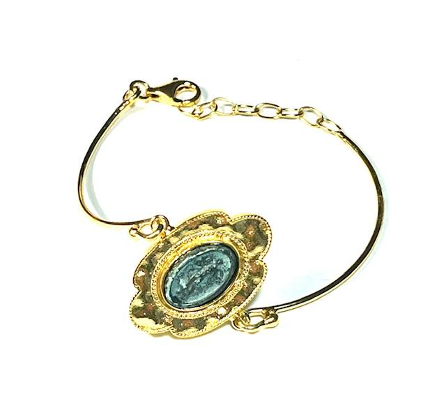 Bracelet in 925 sterling silver plated with 18k gold, with antique coin.