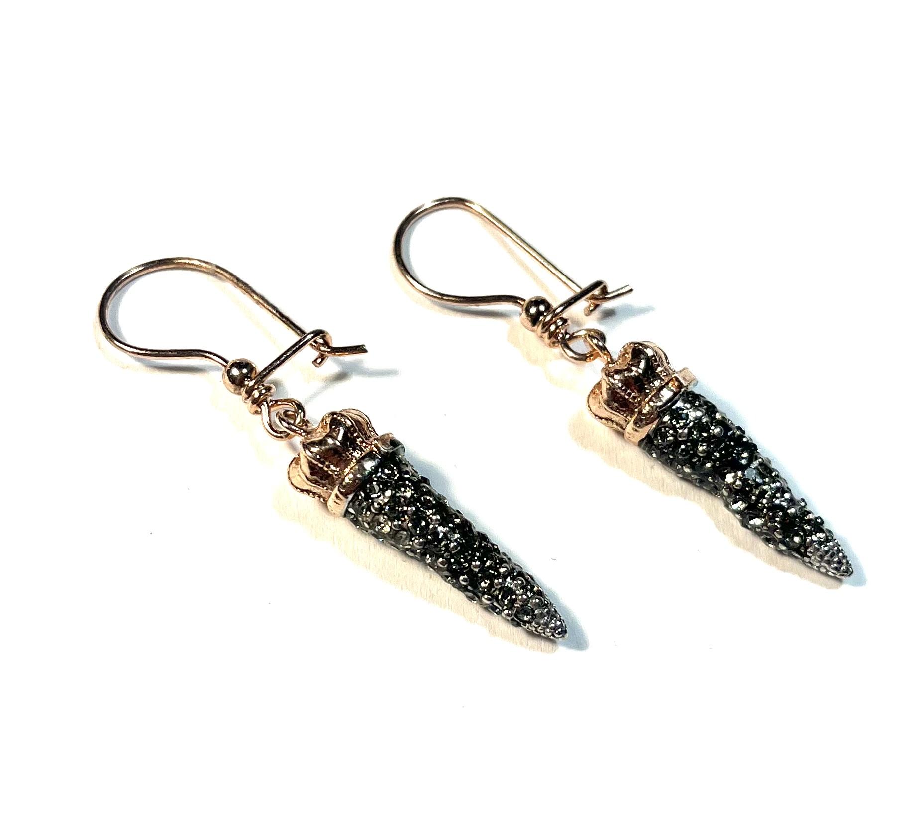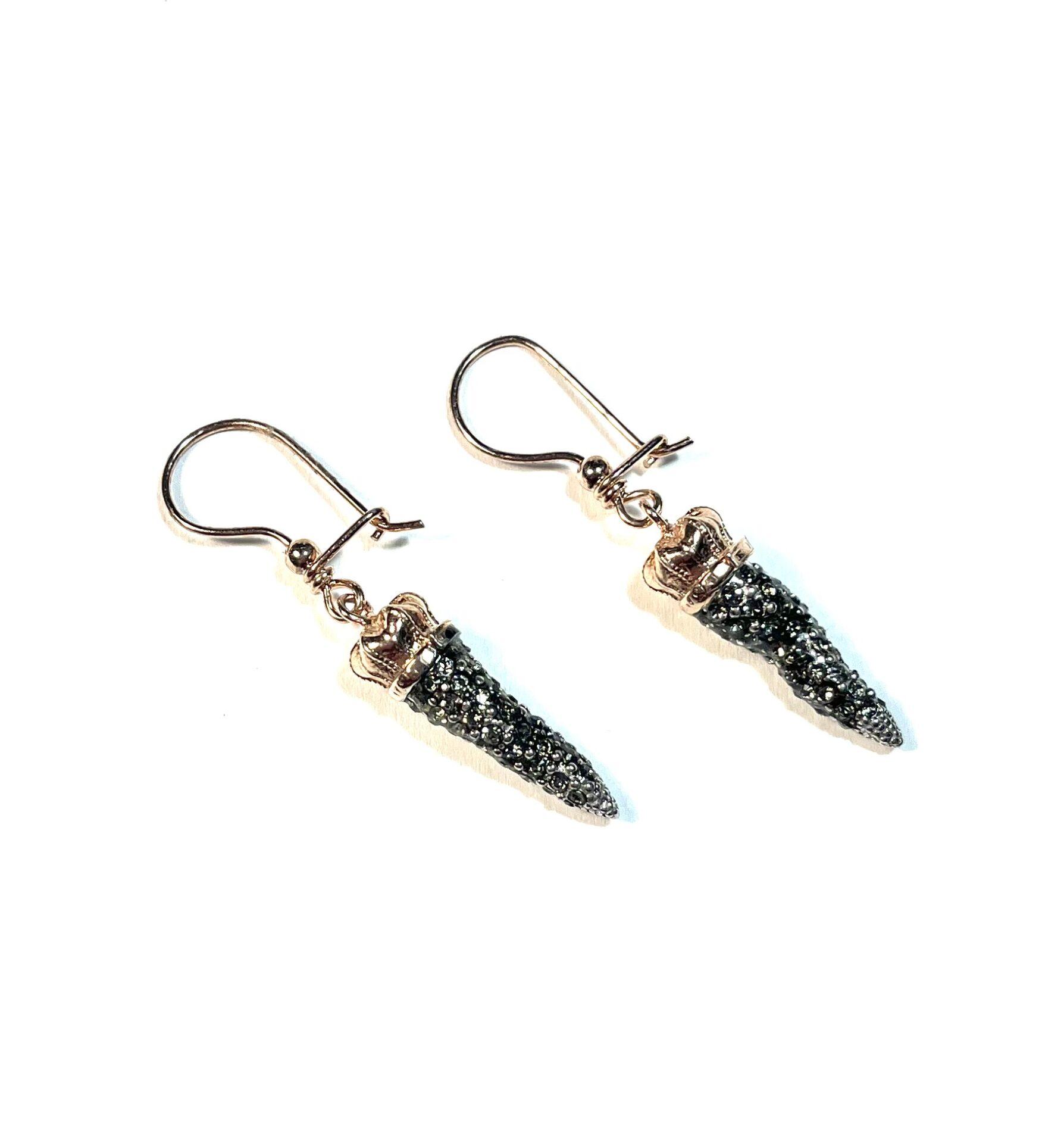 Hook earrings in 925 sterling silver plated rose gold 18 kt with Swarovski. This refined hook earring combines elegance and luminosity in a sophisticated design. The smoky Swarovski stones, expertly set along much of the surface, capture the light with sparkling reflections. Leaving part of the structure in natural silver highlights the brilliance of the stones, emphasizing the balance between shine and preciousness. A jewel perfect for enhancing any look with a touch of class.