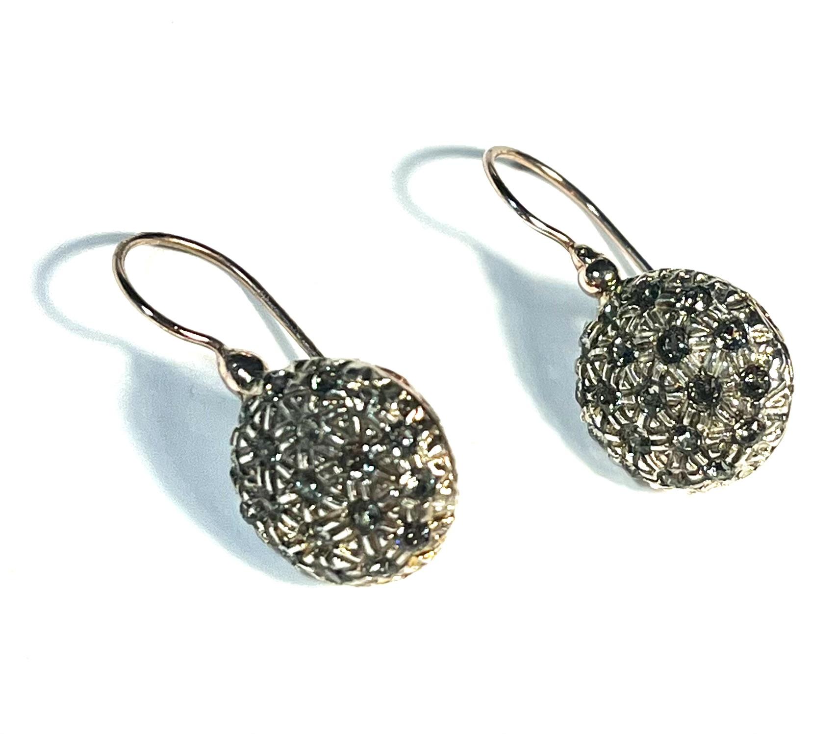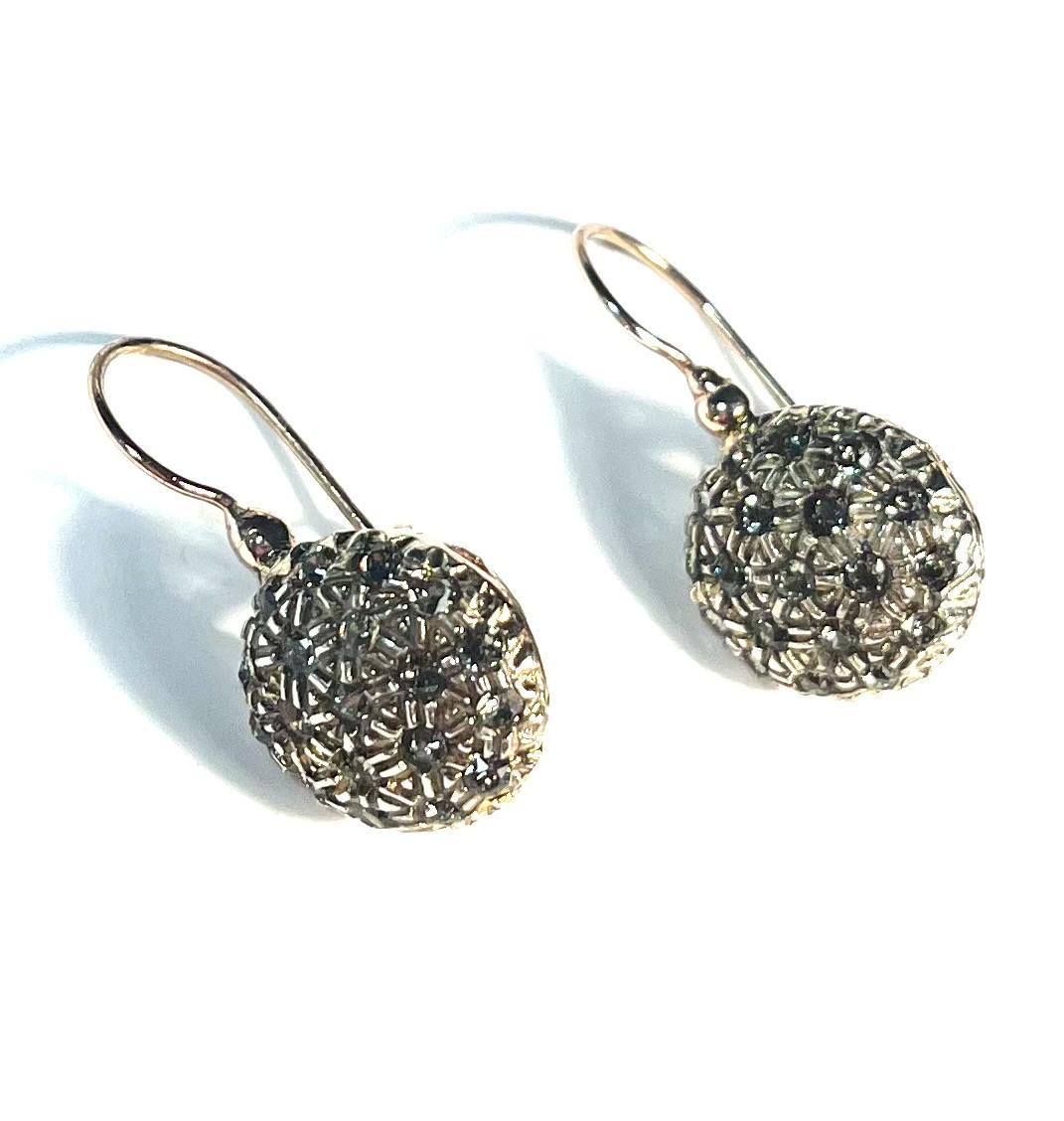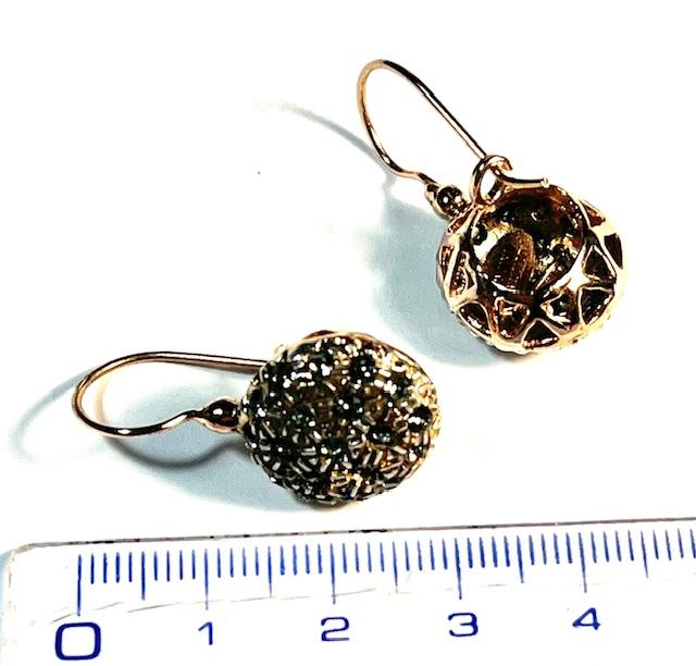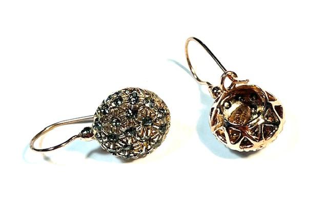 Hook earring in 925 sterling silver plated rose gold 18 kt, with smoky Swarovski. This refined antique-style silver earring is a tribute to the beauty of the past reinterpreted in a modern way. The smoky Swarovski crystals set on the front recall the iconic rosettes of vintage jewelry, symbols of timeless elegance. The light reflected by the stones adds depth, character and a soft yet enveloping brilliance to the wearer. Perfect to wear proudly at special events or to add a sophisticated touch even to the simplest outfits.
