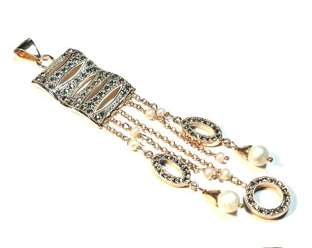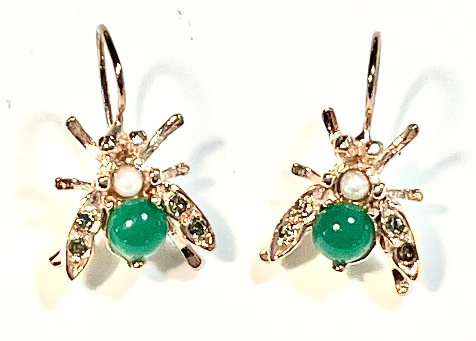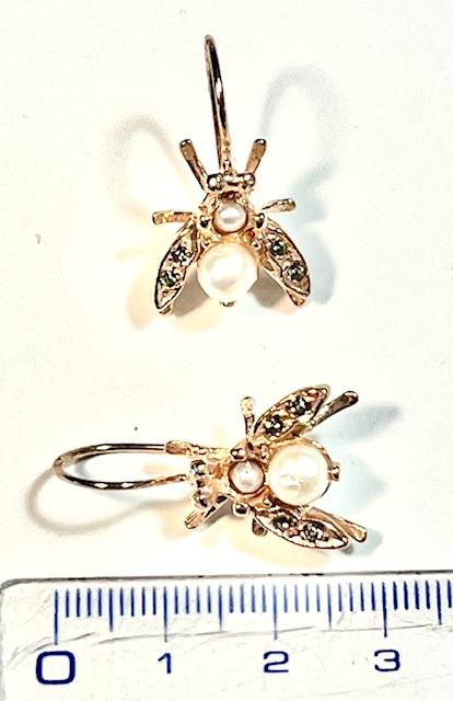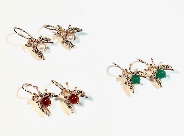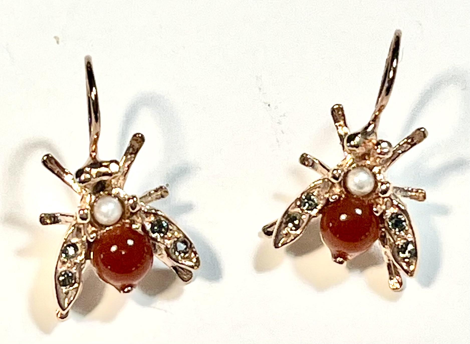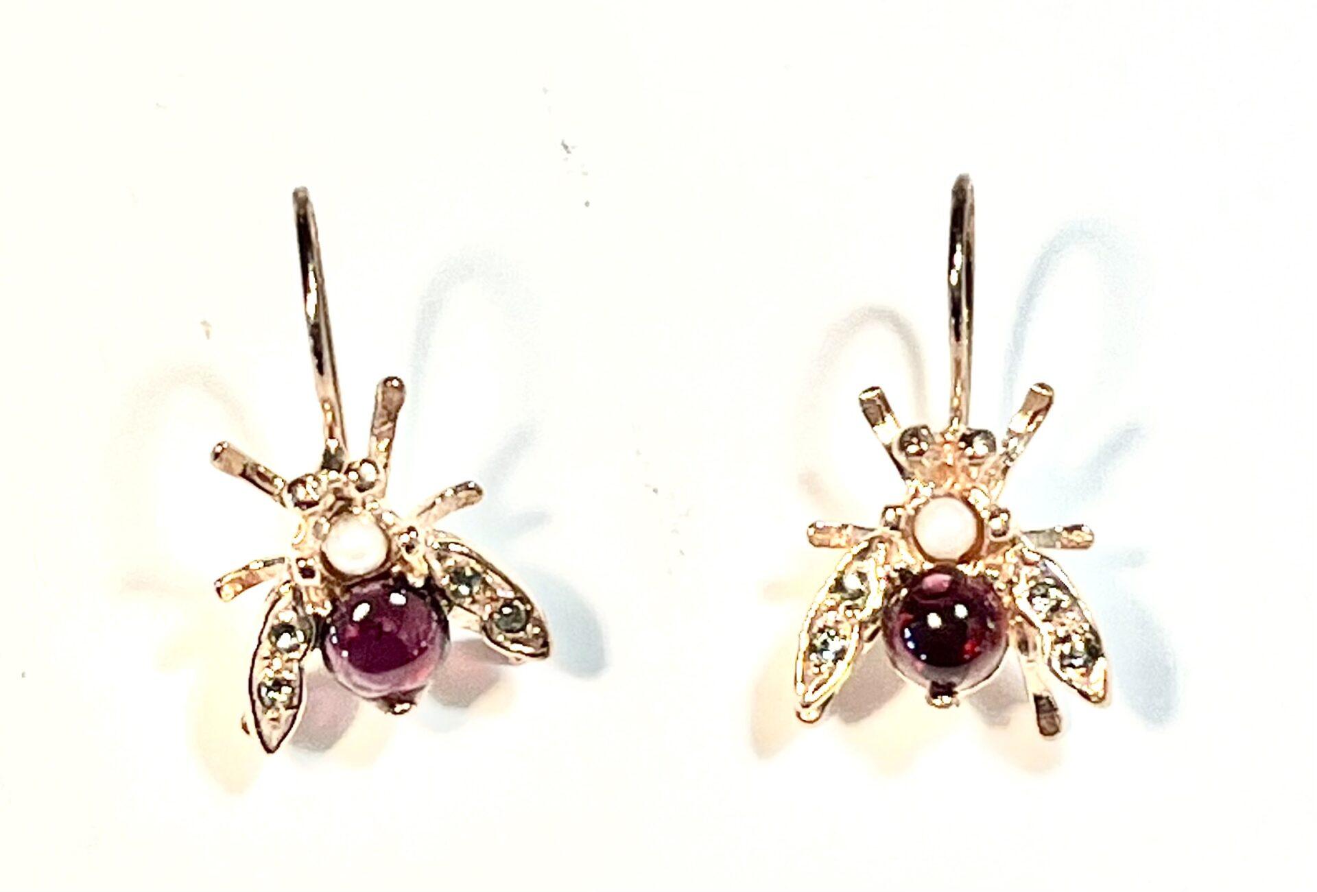 Hook earring in 925 sterling silver plated rose gold 18 kt. Refined antique-style earring inspired by the bee, a symbol of industriousness, harmony and rebirth since antiquity. This small sacred emblem was often associated with royalty and the connection between the earthly and spiritual worlds. The bee is embellished with freshwater pearls, Swarovski crystals and semi-precious stones, carefully set to create elegant reflections and give brightness to the jewel. Perfect for those who love the balance between nature, meaning and fine craftsmanship.