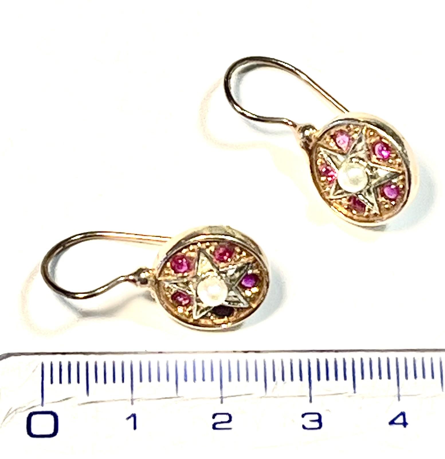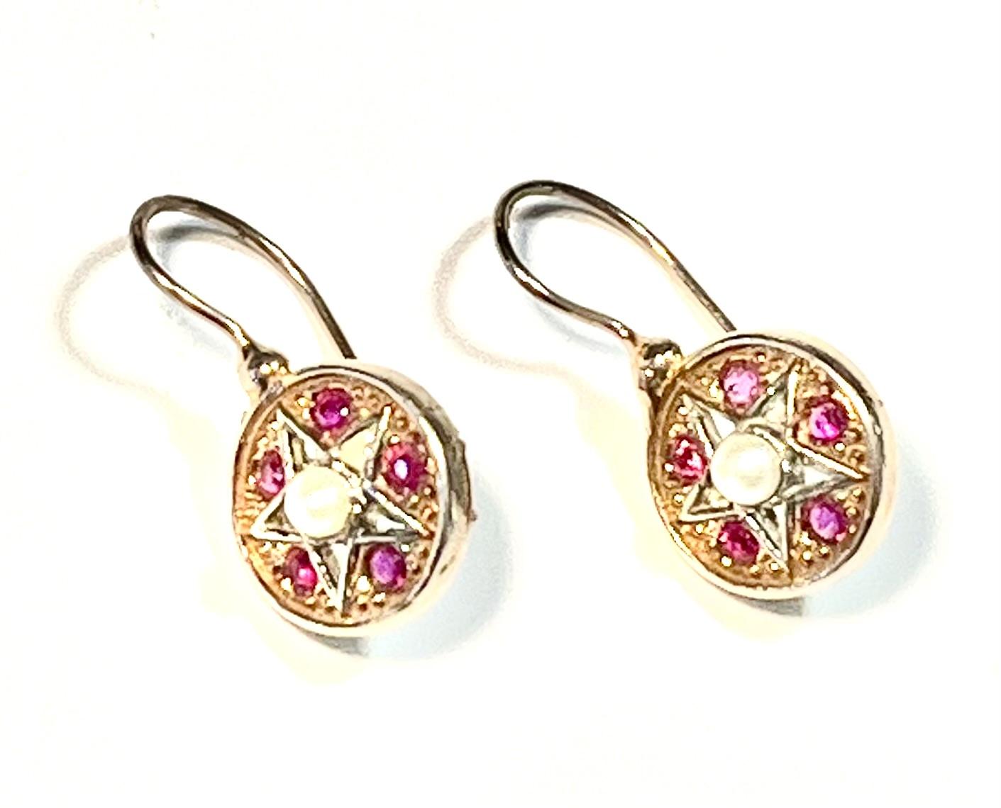 Hook earring in 925 sterling silver plated rose gold 18 kt, with Swarovski stones, pearls and peridot. This antique-style earring, with a round and refined design, embodies timeless elegance. At the center is a burnished star that enhances the central pearl, creating a delicate yet luminous contrast that gives the jewel a precious aura of sophistication. Around the pearl, five ruby-root stones add a rich and vibrant touch of color, giving the model an air of exclusivity and refinement. The ruby, symbol of passion and strength, together with the classic shape and the combination of elements, makes this earring not only a beautiful accessory, but also an amulet that holds meanings of protection, love and balance.