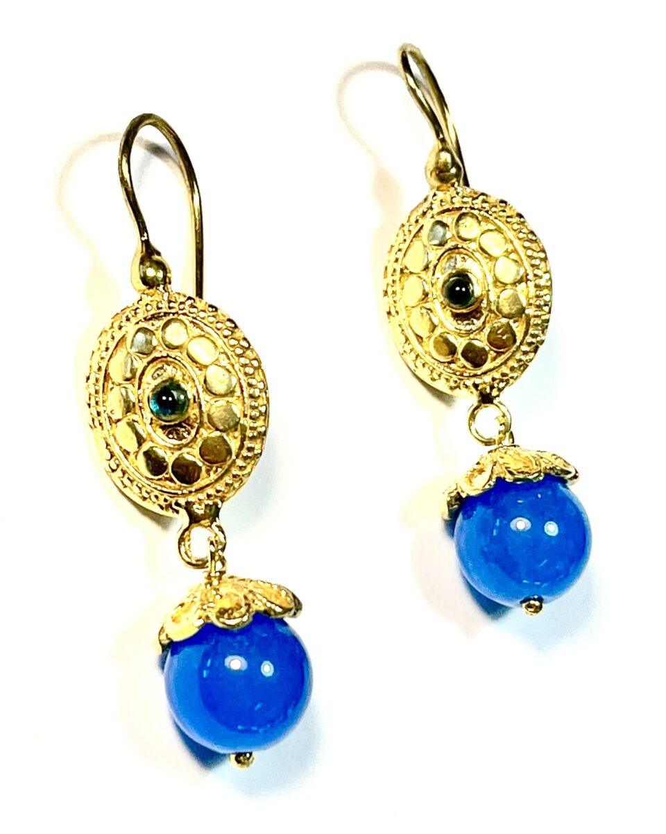 925/°° sterling silver hook earring plated with 18-carat gold with semi-precious stones