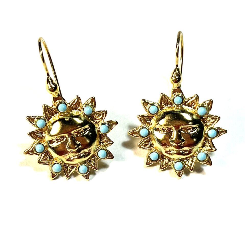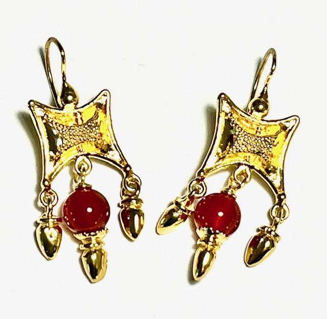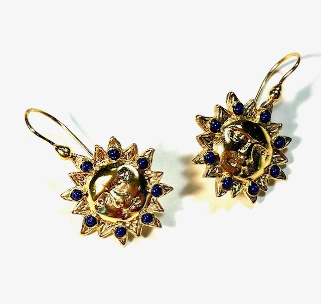 Hook earring in 925 sterling silver plated with 18k gold, with antique coin.