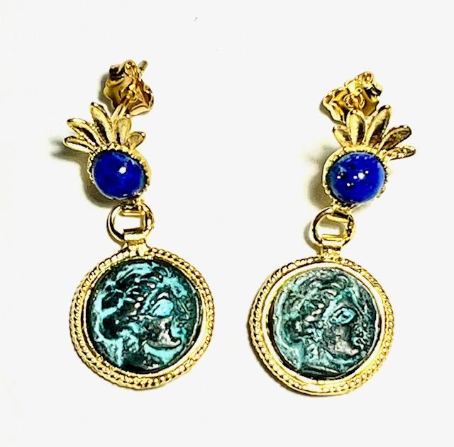 Stud earring in 925 sterling silver plated with 18k gold with semi-precious stones.